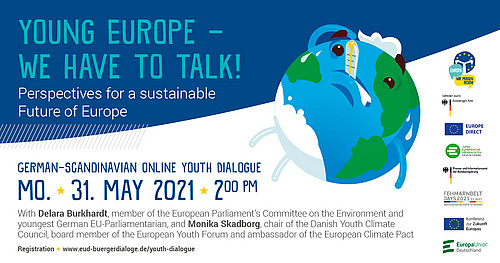 Seid am 31. Mai um 14 Uhr bei unserem Online-Jugenddialog „Young Europe – We have to talk! Perspectives for a sustainable Future of Europe” dabei und tauscht euch auf Englisch aus mit Delara Burkhardt, Mitglied im Umweltausschuss des Europäischen Parlaments und jüngste deutsche Europaabgeordnete, und Monika Skadborg, Vorsitzende des Dänischen Jugendklimarates und Botschafterin des Europäischen Klimapaktes. » weiterlesen