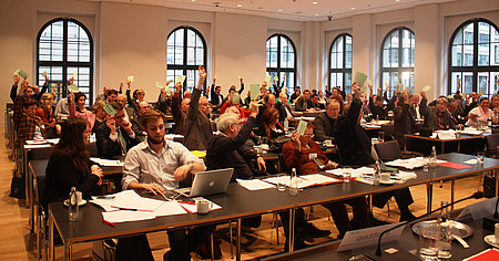 In einem politischen Beschluss bekräftigte der Bundesausschuss anschließend die Forderung nach einer Ausweitung des Wahlrechts für alle EU-Bürger auch auf Landes- und Bundesebene. Die Landesverfassungen und Wahlgesetze sollen auf den Prüfstand.  Wenn nötig, müsse auch über eine Änderung des Grundgesetzes diskutiert werden, damit ausländischen EU-Bürger bei Landtags- und Bundestagswahlen nicht länger das Recht zur Stimmabgabe verwehrt wird,